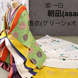 種類:十二単 色味:朝凪 着付け所要時間:約60分 憧れの十二単が体験できるプランです。 衣裳も大変貴重なものであり、着付けも専門の技術、資格を持った着付け師だけができる特別なプランです。 体験プランではかつらを「ロングウィッグ」と「大垂髪」の2種類からお選びいただけます。 【十二単とは】 奈良時代の後期に着物の原型が生まれたと言われ、平安時代により現代に近い着物が生まれました。 十二単は平安時代の中期に完成した女房装束の儀服です。 女房装束の代表格・十二単は、成人女性の正装です。 宮中などの公の場所で晴れの装いとして着用されました。 着用するときも限られていて、宮中の儀式など、公家女房の晴れの装いとして用いられました。 現在では御即位の大礼の儀、皇族妃の御成婚の儀に用いられます。 全体の構成は、「唐衣(からぎぬ)・表着(うはぎ) ・打衣(うちぎぬ)・五衣(いつつぎぬ)・単衣(ひとえ)・長袴(ながばかま)・裳(も)からなり、髪型は大垂髪(おすべらかし)が基本です。 申し込み方法: ①お好きな着物・予約日時・場所を選びます ②その他入力項目を記入し、申し込み完了メールが届けばOK ③当日 予約時間の10分前にお越しください。 【セット内容】十二単 お道具一式・着付け・ヘアセット・メイク 【備考】・専用スタジオ(京都二条)でのお着付となります。 ・移動はお客様ご自身でお願いいたします。 ・十二単での外出は不可。 ・サロン内でご自身での撮影可。